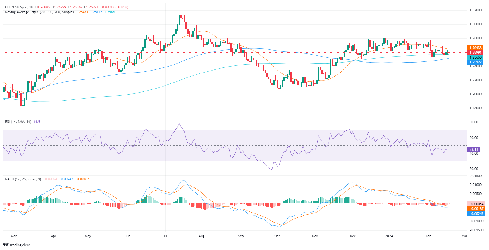 - 英镑兑美元目前交投于 1.2597,周一交易时段温和下跌。