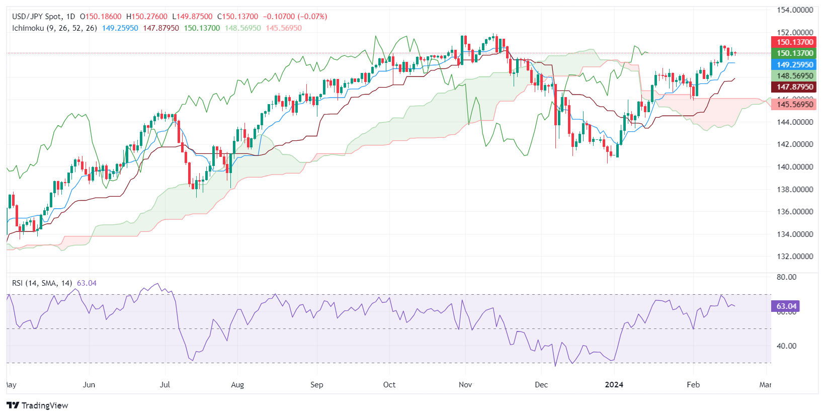 周一晚些时候,华尔街因美国总统日假期休市,美元/日圆在波澜不惊的交易时段横盘整理。截至发稿时,美元/日圆交投于 150.13,维持持平。