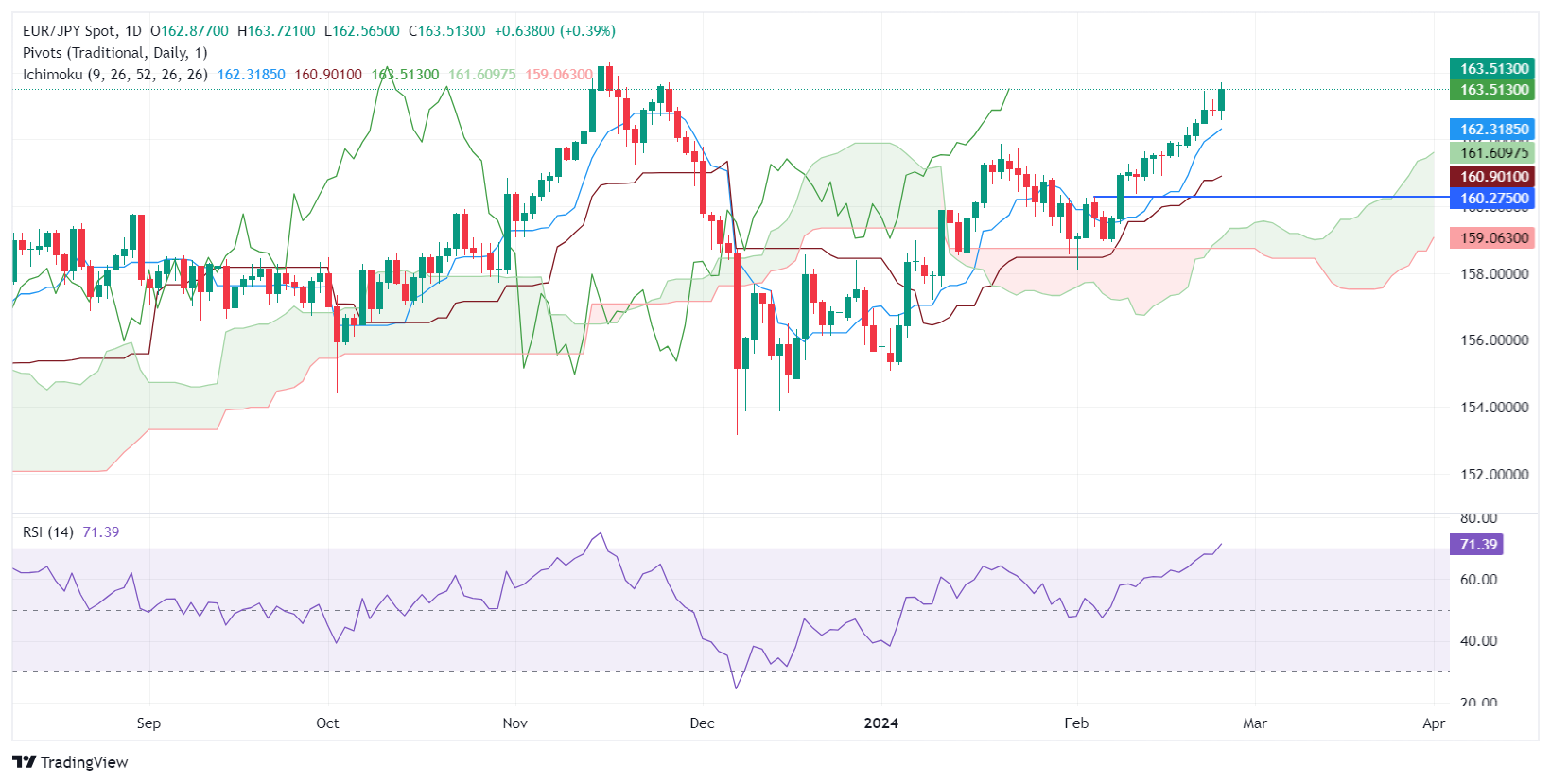 另一方面,首个支撑将是163。若跌破周一低点162.56,汇价料进一步回落突破转换缐(Tenkan-Sen)162.31,空头关注Senkou Span A的水平161.61,然后為基准缐(Kijun-Sen)160.90。
