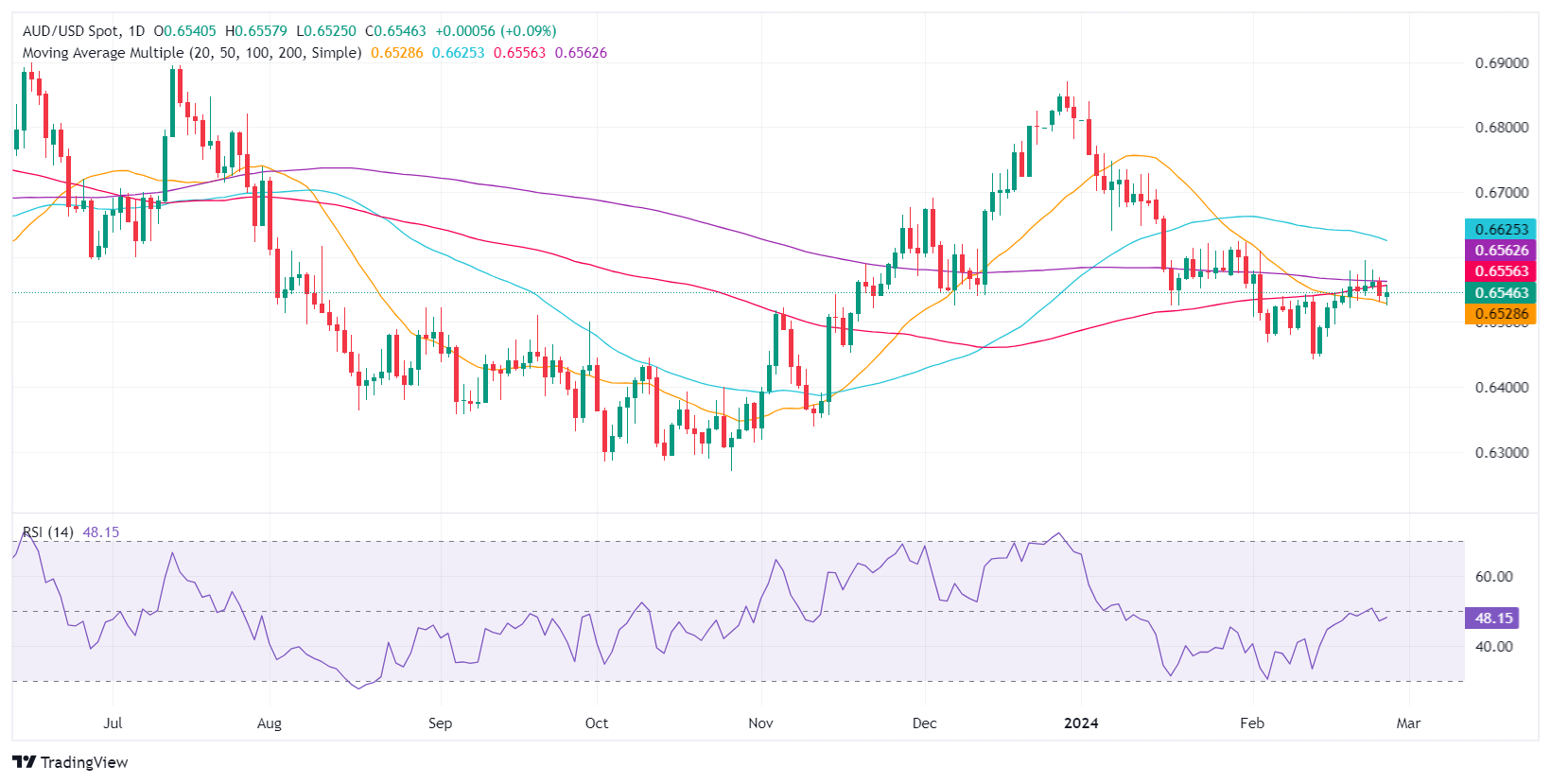 澳币要继续看跌,必须跌破 2 月 27 日的低点 0.6524 和 0.6500。一旦跌破这些水平,则有望测试年缐低位 0.6442。上档方面,如果多头推动澳元/美元突破 100 和 200日均缐0.6559附近,则可能為挑𢧐 0.6600 铺平道路。