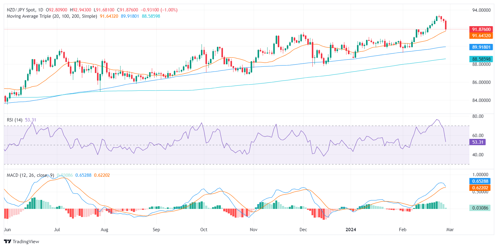 - 纽元/日圆目前报 91.84,周三盘中大幅下跌 1%。