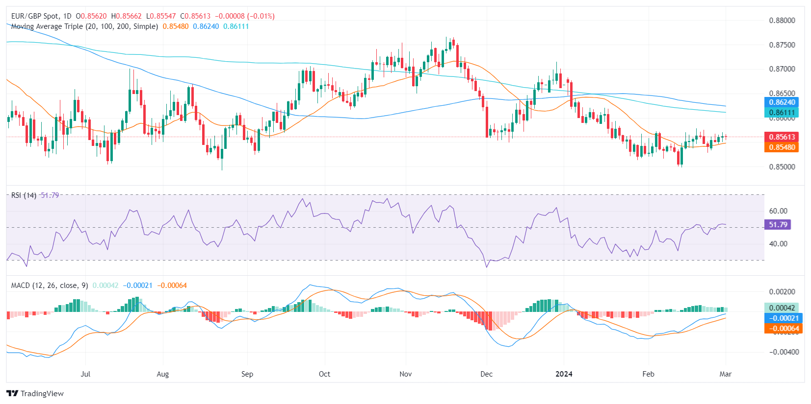欧元/英镑目前交投于0.8560附近,在欧元区2月调和消费者物价指数(HICP)报告高于预期后略有上涨。现在的焦点转向下周的欧央行利率决议。