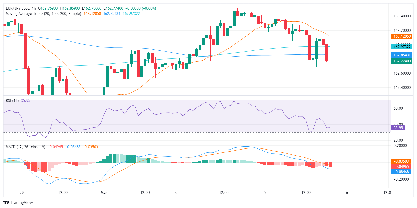 - 欧元/日圆交投于162.76附近,周二下跌0.31%。