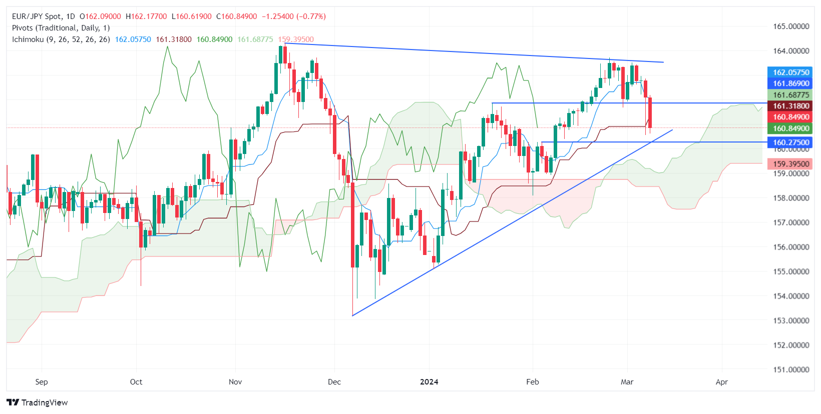 - 技术分析显示,如果该货币对收盘价低于 161.31 Kijun-Sen 水平,则有可能进一步回落。