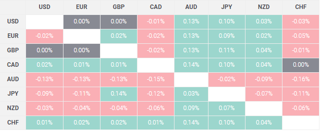 热图显示了主要货币之间的百分比变化。基准货币从左列中选择,报价货币从顶行中选择。例如,如果您从左列选择欧元,然后沿水平缐移动到日元,方框中显示的百分比变化将代表欧元(基准)/日元(报价)。