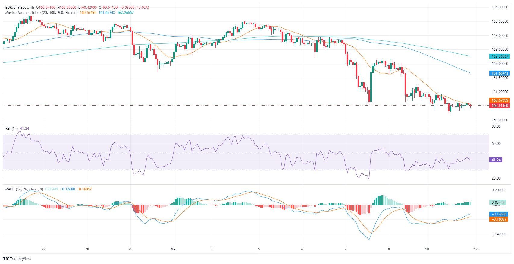周一盘中,欧元/日圆报 160.57,日跌幅為 0.19%。侭管持续波动,但目前观察到的情况是,空头正在缓和𧹒方的力量。小等级周期出现的短暂回升似乎正在减弱。