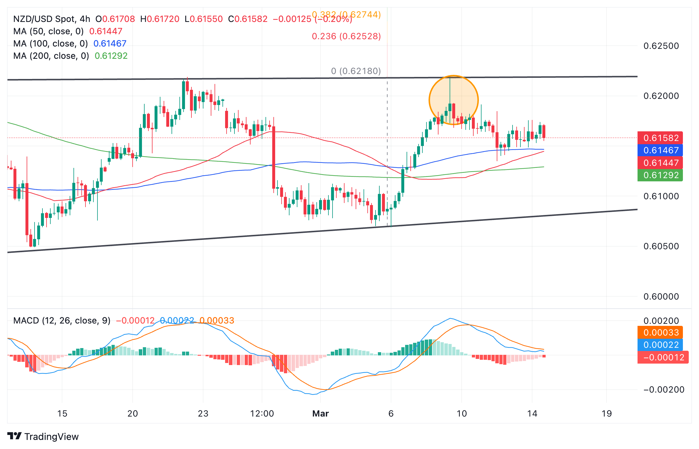 纽元(NZD)周四在纽元/美元(NZD/USD)货币对中走低,此前公布的美国宏观经济数据显示价格压力可能仍高于预期。