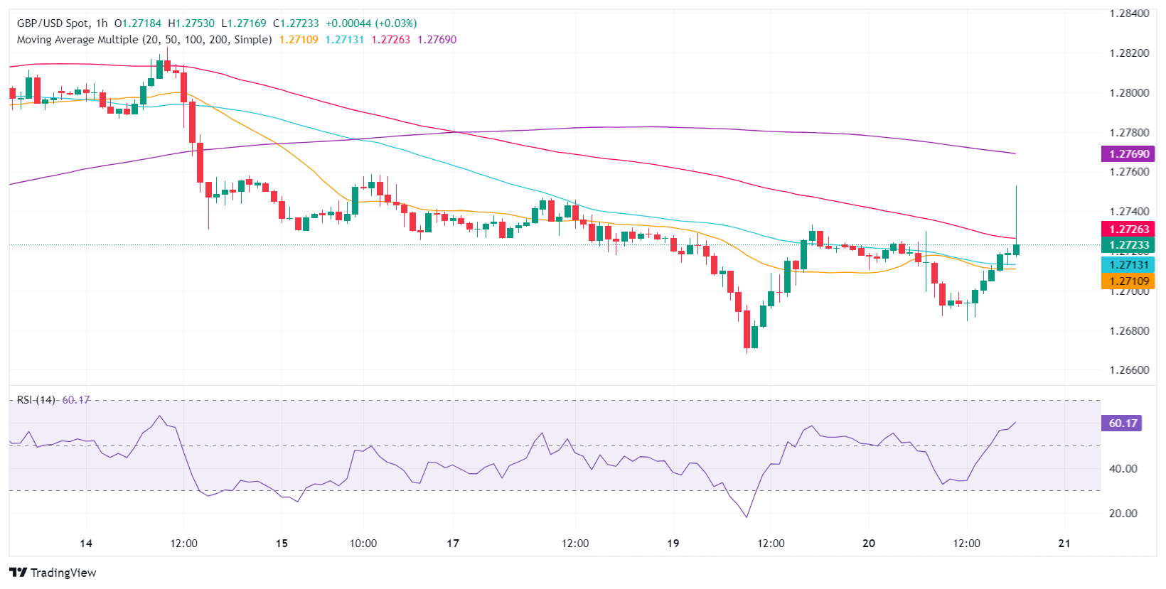 英镑兑美元在联准会(FED)决定维持利率不变,但维持 2024 年降息预期不变后大幅攀升。随后,联准会主席鲍威尔主持新闻发布会,英镑兑美元下跌,震盪于 1.2700/1.2750 区域附近。