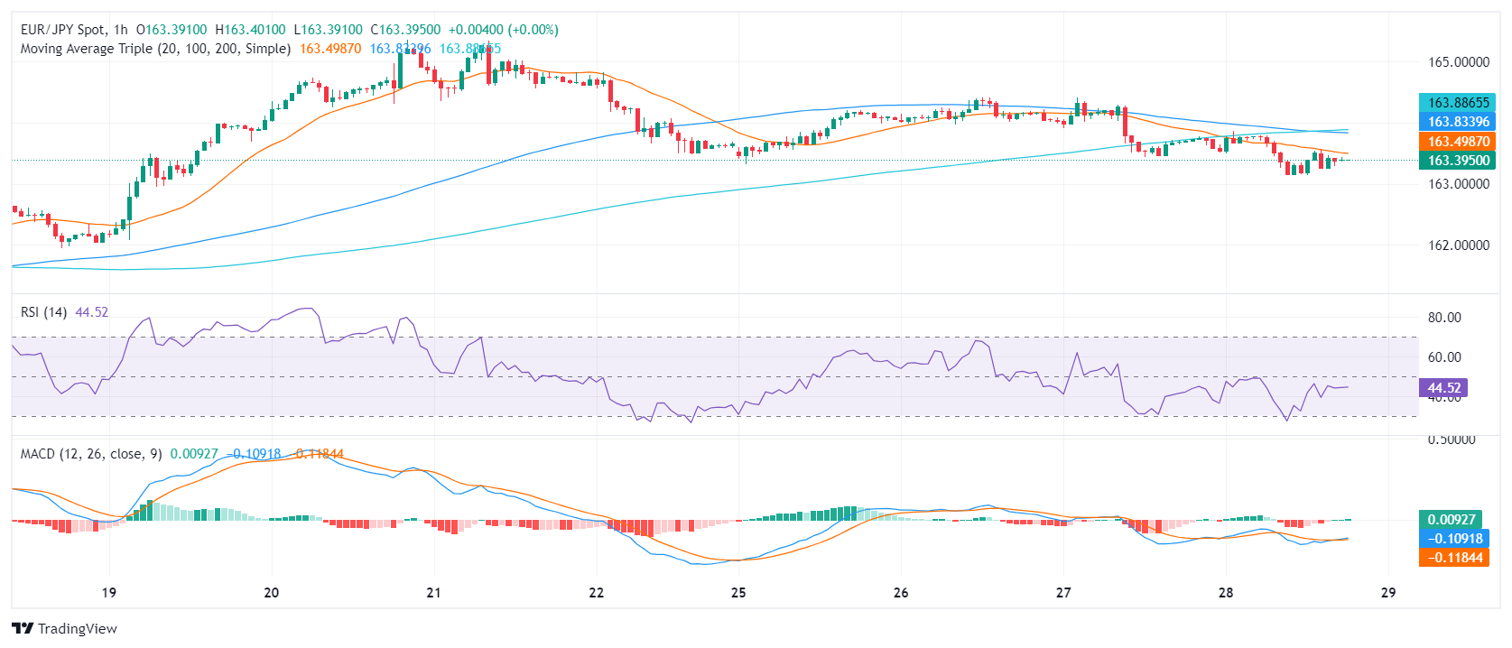 周四盘中,欧元/日圆在 163.40 附近小幅震盪。总体显示多头占主导,表明做多力量使欧元/日元保持在 20 日、100 日和 200 日简单移动均缐(SMA)上方。侭管如此,日缐图上仍有卖压不断增加的迹象。