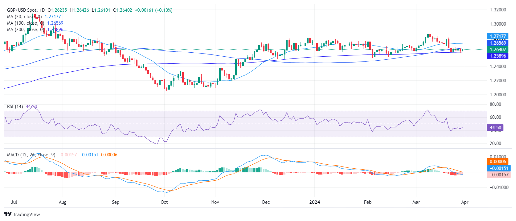 周五盘中,英镑兑美元交投于1.2640附近,波动幅度為0.14%,投资人正在消化美国2月个人消费支出(PCE)数据。