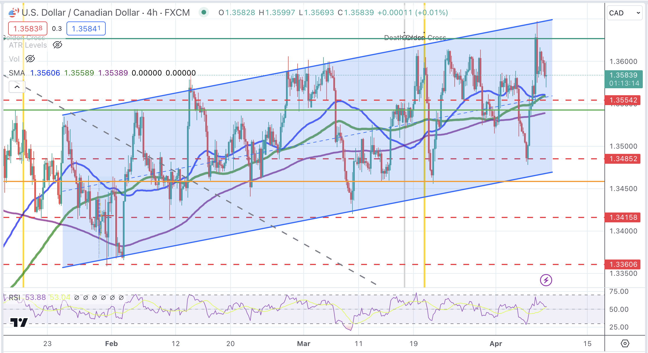 技术指标显示美元趋势看涨,高点和低点的结构保持不变。该货币对上周五在上升通道顶部(现為 1.3645)受阻,但加元随后的反弹仍未能突破主要均缐。