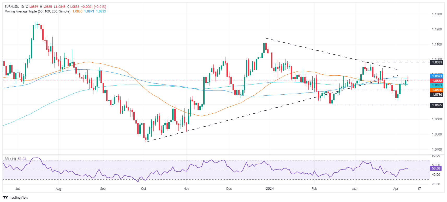 欧元兑美元徘徊在 1.0850 附近,市场关注即将发布的经济数据