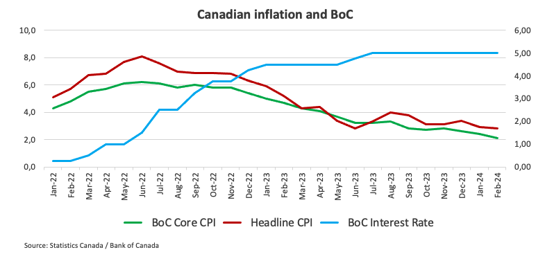 在今年的第二个月,消费者 物价指数(CPI)记录了总体通膨率的持续下降轨迹,而加拿大央行(BoC)的核心 CPI 则显示了一些黏性物价压力。在最近一次会议上,加拿大央行的声明预计今年上半年的通膨率将维持在 3% 左右,然后𫔭始逐步放缓。
