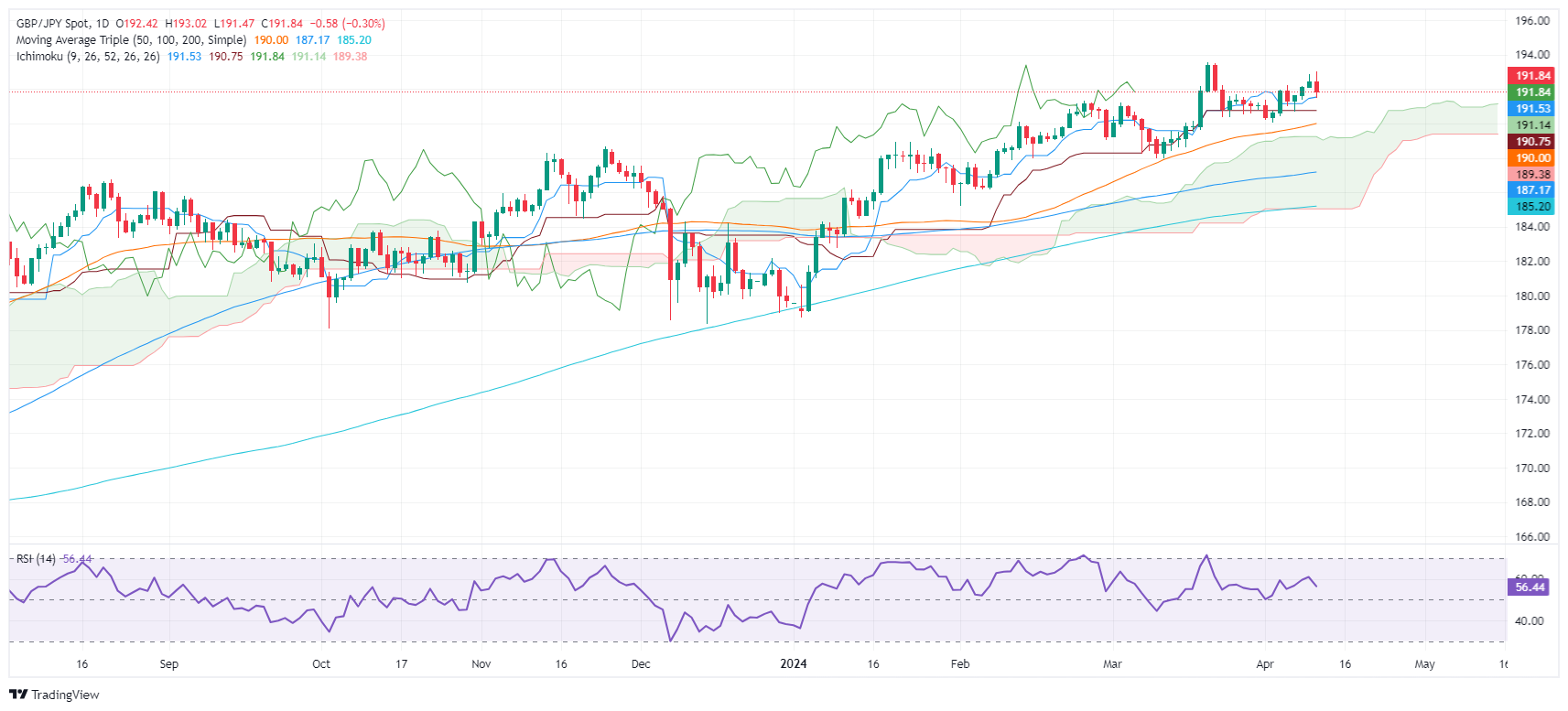 另一方面,英镑/日圆的第一个阻力位是 192.00 点,然后是 4 月 10 日高点 192.95 点。下一个阻力位是目前的年初至今(YTD)高点 193.53。