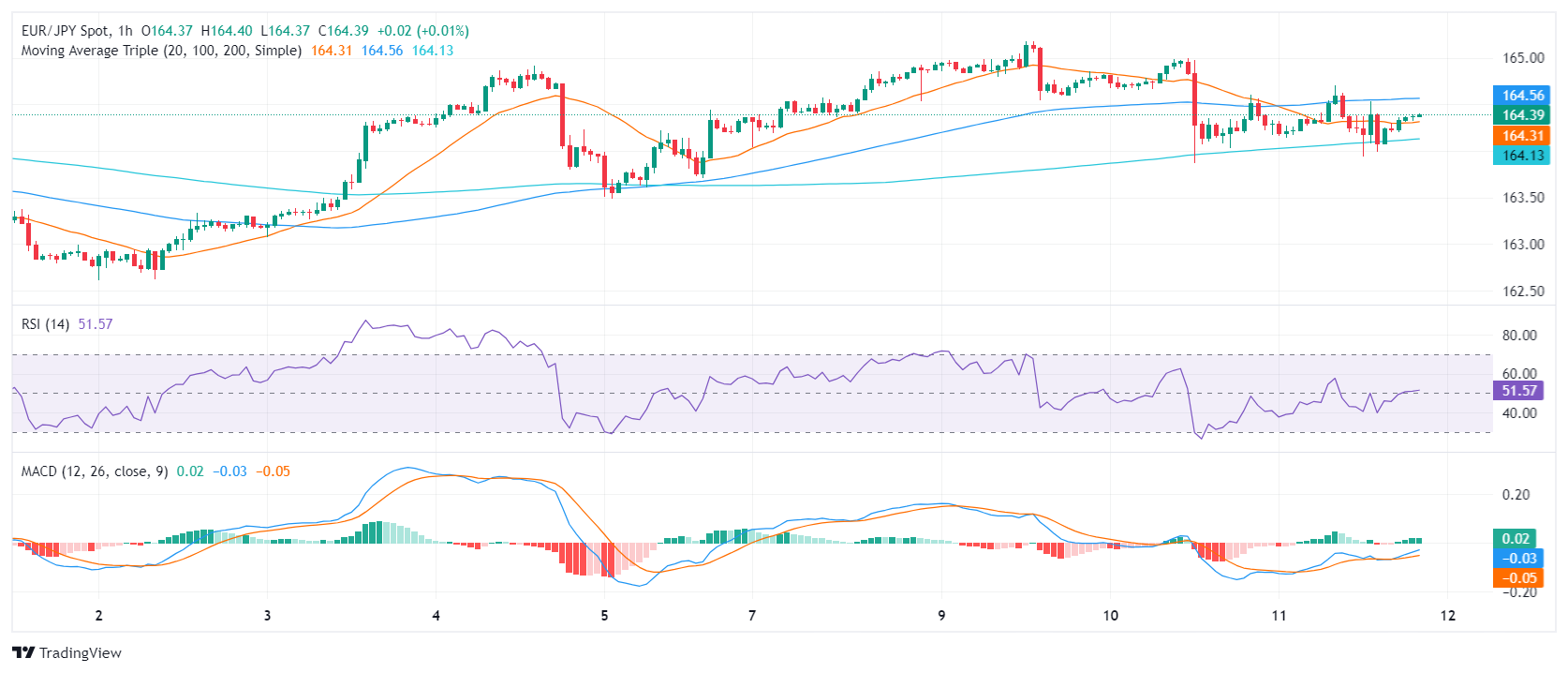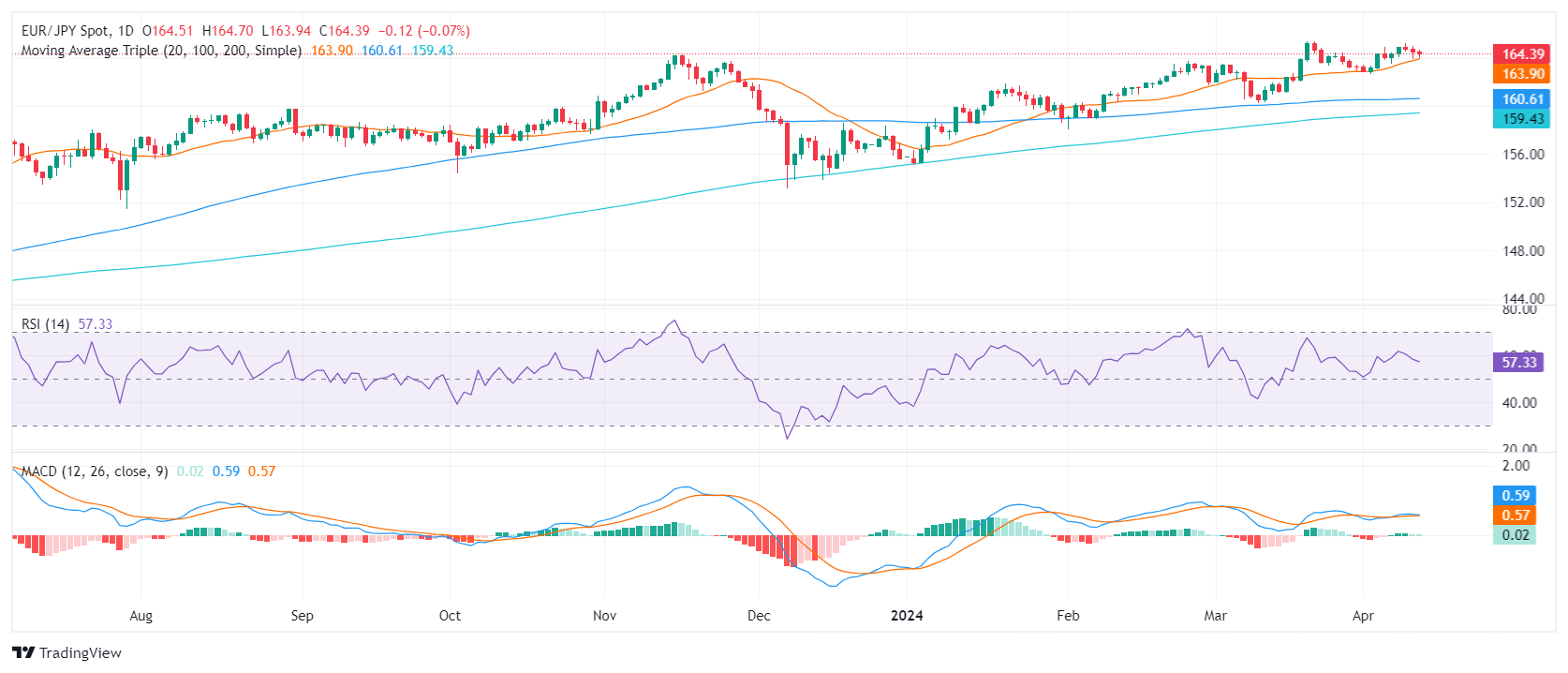 欧元/日圆目前交投于约 164.37 水平,略现回落。侭管趋势看涨,但随著 日缐图上看涨势头的减弱以及空头逼近 20 日简单移动平均缐 (SMA),交易者必须密切关注可能会出现反转。
