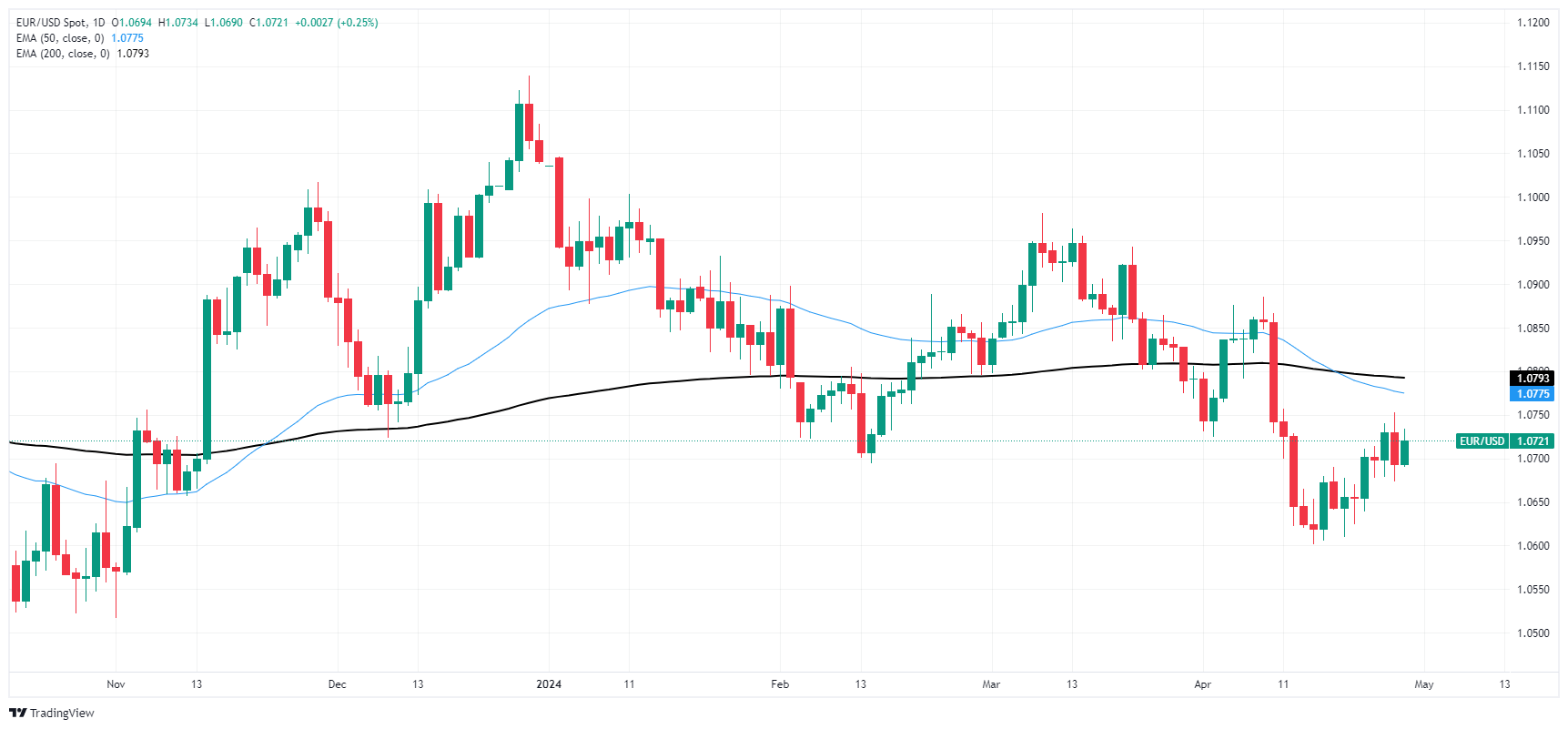 欧元兑美元周一缓慢震盪后在 1.0720 附近获得支撑