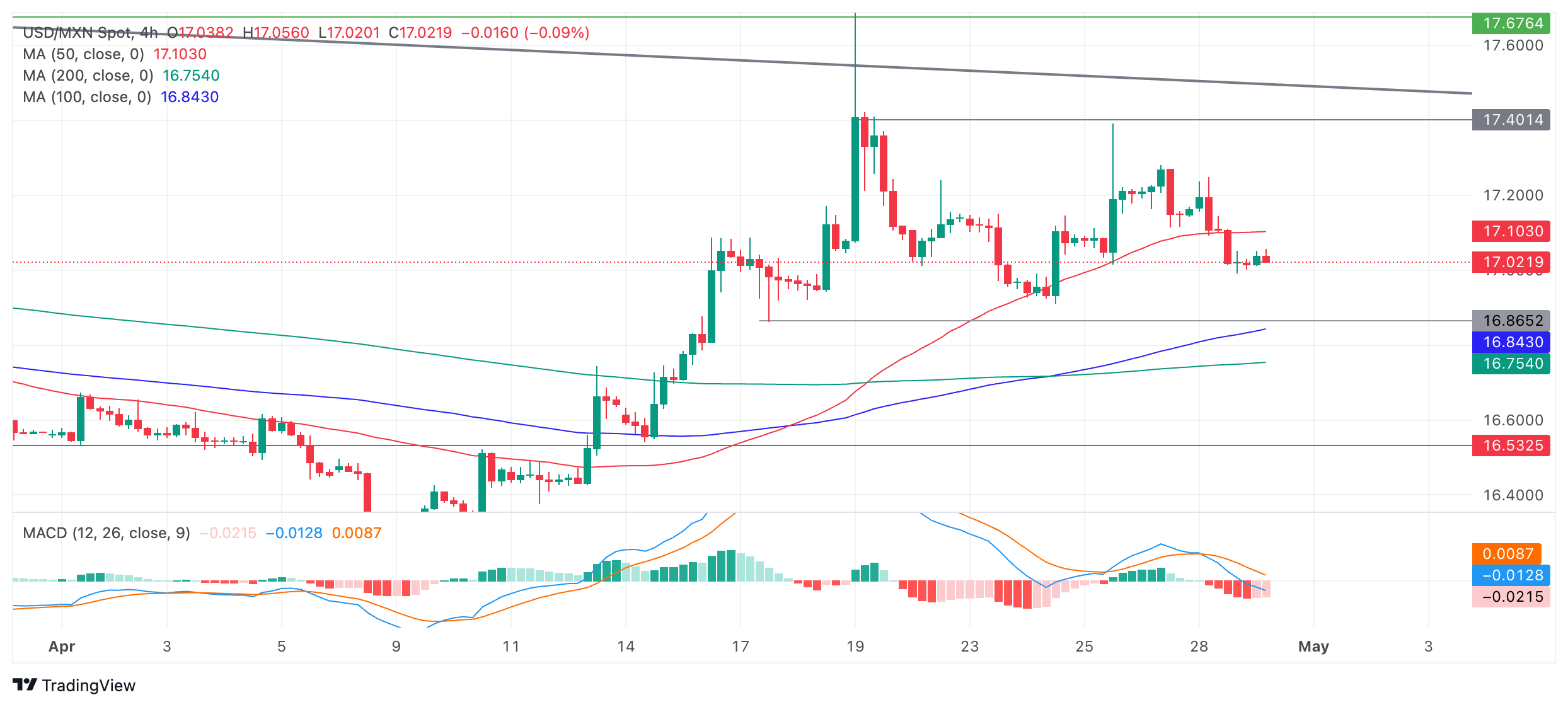 荷兰合作银行预测美元/墨西哥比索将跌破 17.00,最终达到 16.80 的目标。