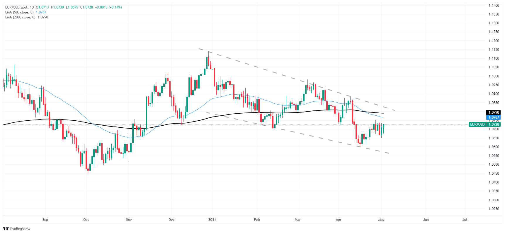欧元兑美元周四回到近期盘整区间顶部,收复1.0700关口上方区域,因市场风险偏好在周五美国非农就业数据(NFP)公布前恢复平衡。