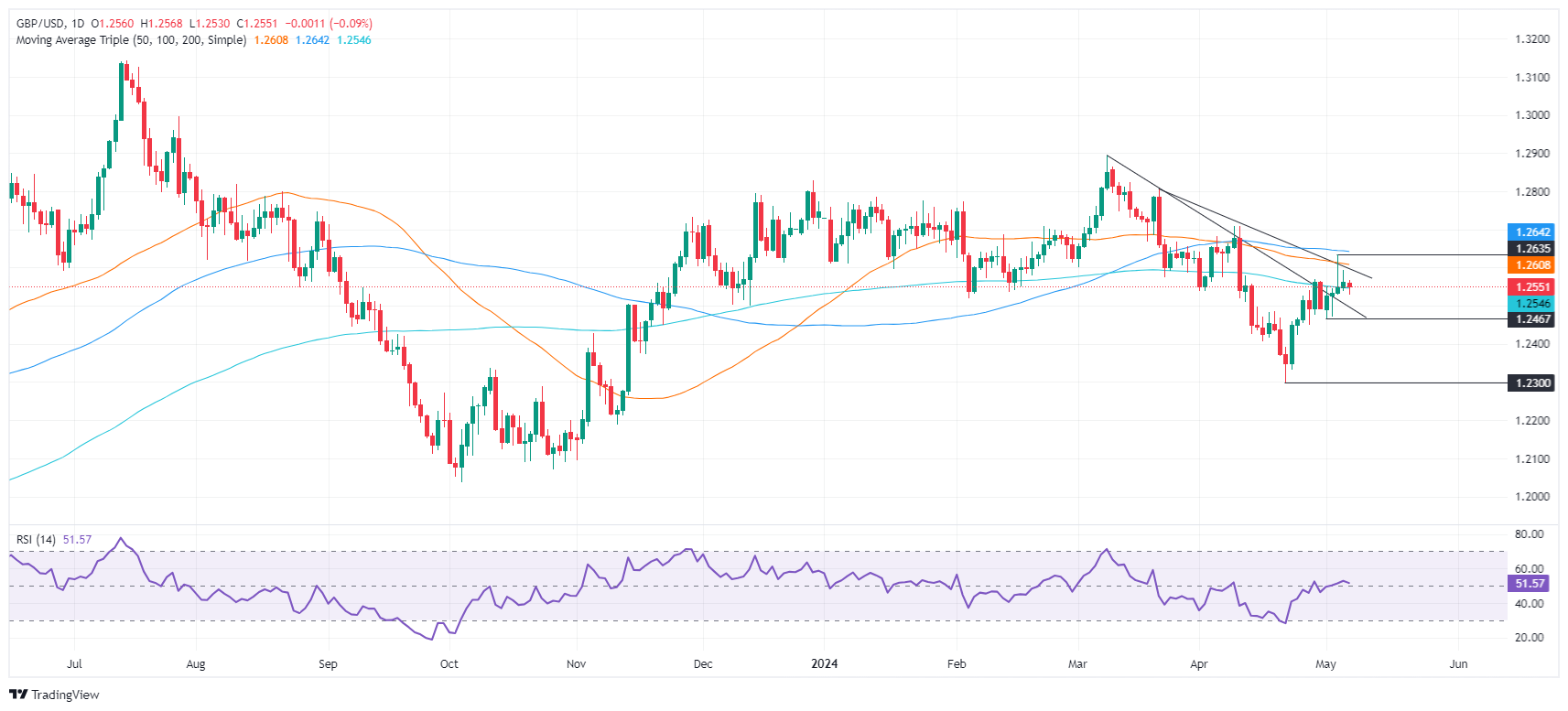 - 技术前景中性至小幅看涨;阻力位在近期高点 1.2594 和 50-DMA 1.2607。