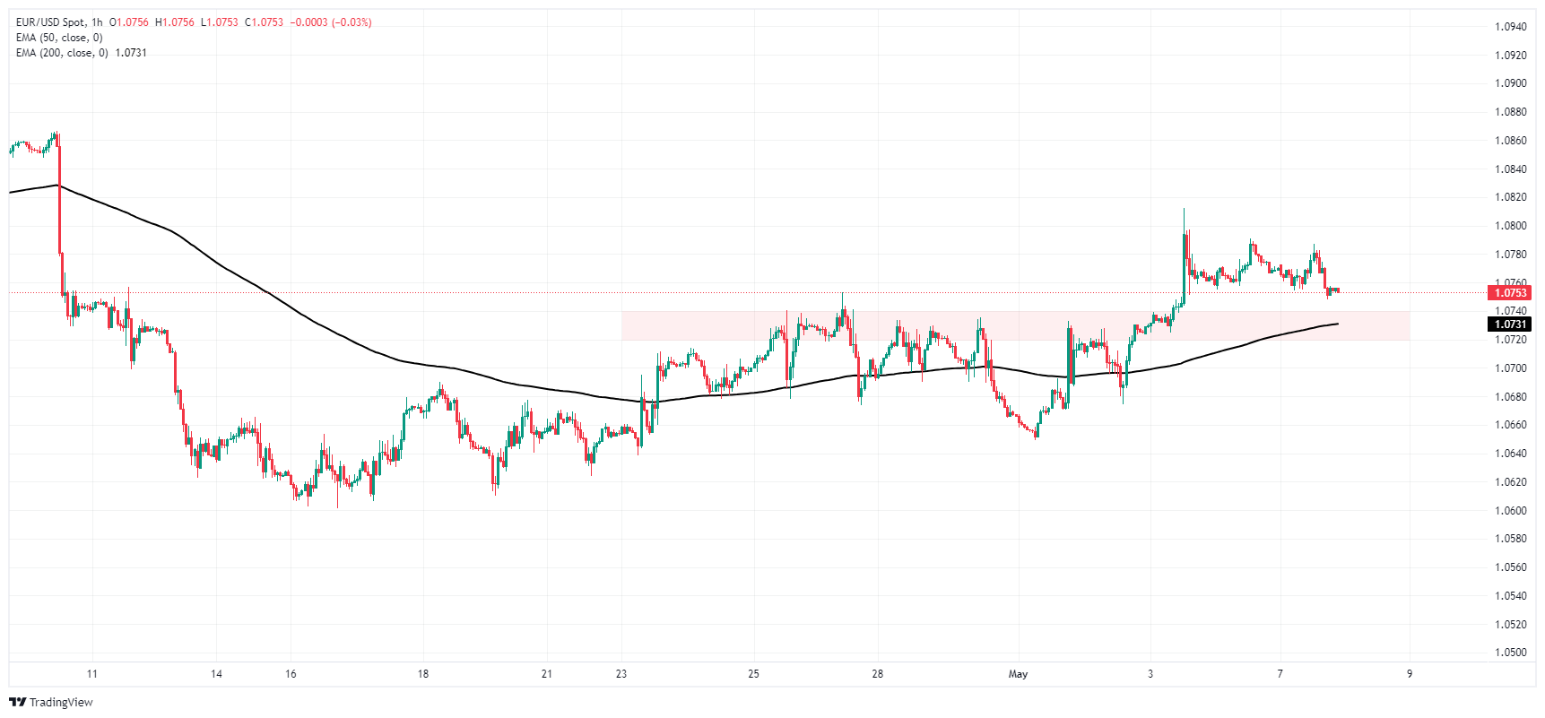 欧元/美元缺乏方向动能,徘徊在 1.0750 附近