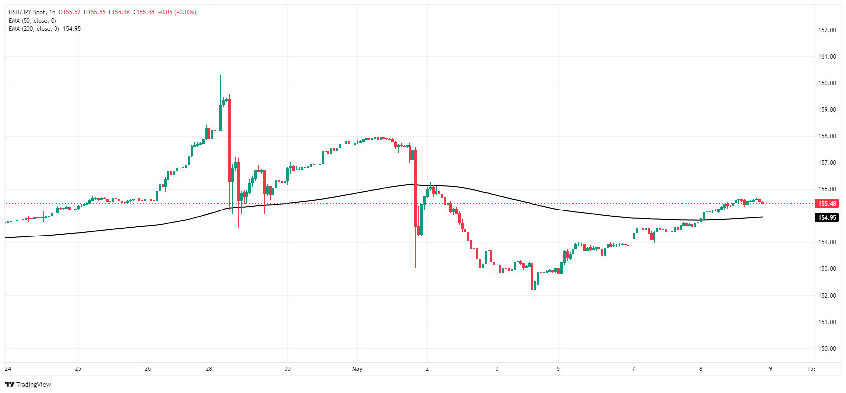 美元/日圆在本周市场交易时段重新上涨突破 200 小时指数移动均缐(EMA)155.04 ,在 155.70 点附近触及新高,并将冲击 156.00 点关口。从上周低于 152.00 的震盪低点算起,该货币对已凌厉上涨了约 2.5%。