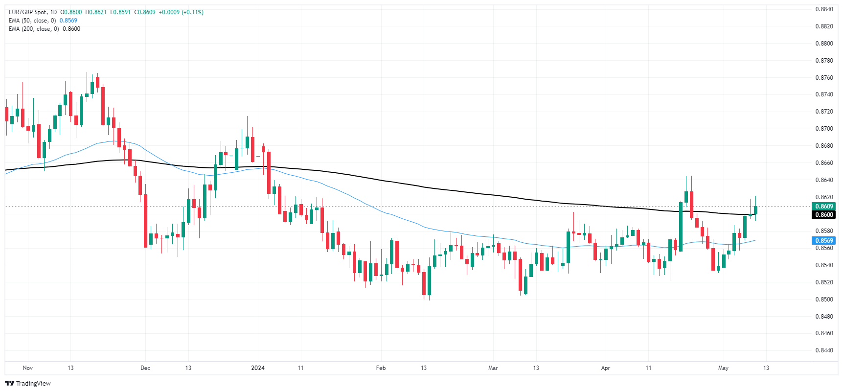 周四,欧元/英镑维持震盪,原因这两个货币所属的央行竞相向市场重申,应对通膨的进程正在取得进展,降息的道路即将到来,但尚未完全到来。英国央行(BOE)以7比2的投票结果维持利率稳定,向降息迈进了一步,而欧洲央行(ECB)多位官员的谈话要点则重申了通膨最终将回到欧洲央行目标水平的信息。
