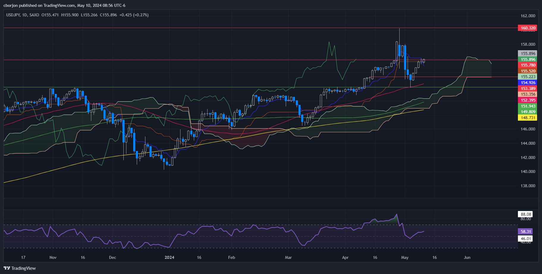 从技术角度来看,美元/日圆的涨势仍将持续,因為相对强弱指数(RSI)显示动能偏向𧹒方。另一方面,如果跌破 155.78 的 Kijun-Sen 可能会為挑𢧐 155.22 的 Senkou Span A 以及 154.92 的 Tenkan Sen 铺平道路。
