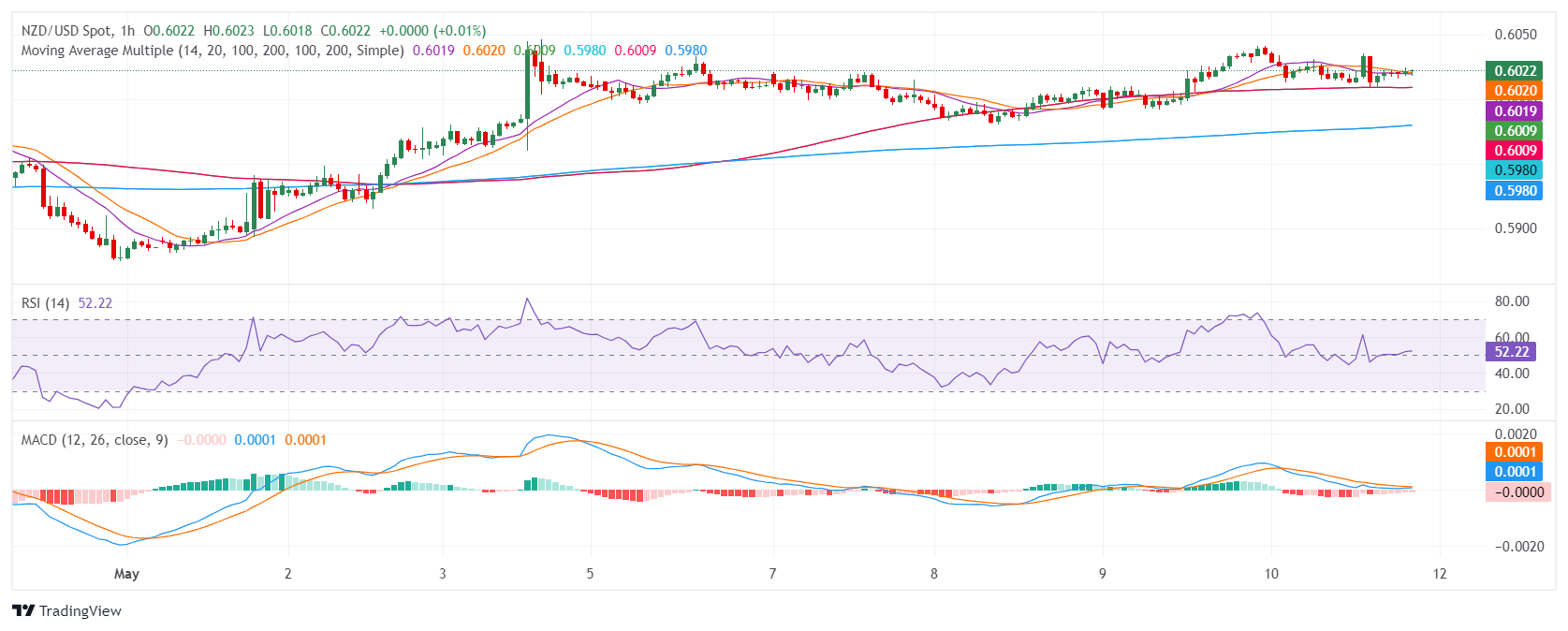 - 小时指标显示纽元/美元走势平衡。