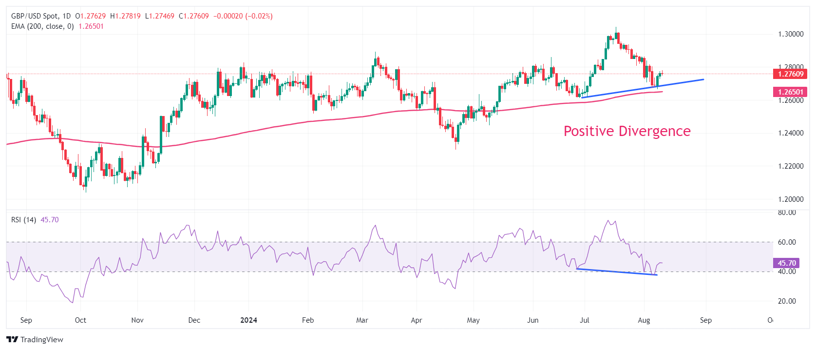 英镑/美元继续守住 200 天指数移动平均缐 (EMA),该均缐在 1.2650 附近交投。